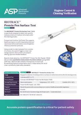 The BIOTRACE™ Protein Pen Test System provides rapid, reliable, and quantifiable detection of residual proteins on surgical instruments and surfaces after cleaning. Combining the BIOTRACE™ Protein Pen Surface Test and the BIOTRACE™ Protein Pen Mini Reader, this integrated solution ensures confidence in every cleaning cycle — supporting infection prevention, process efficiency, and full traceability.